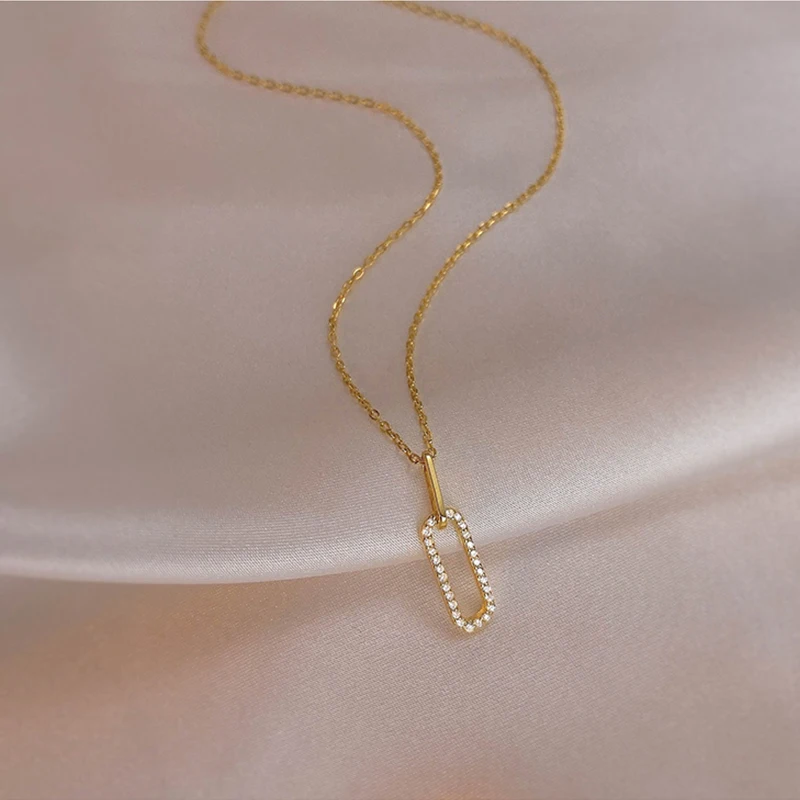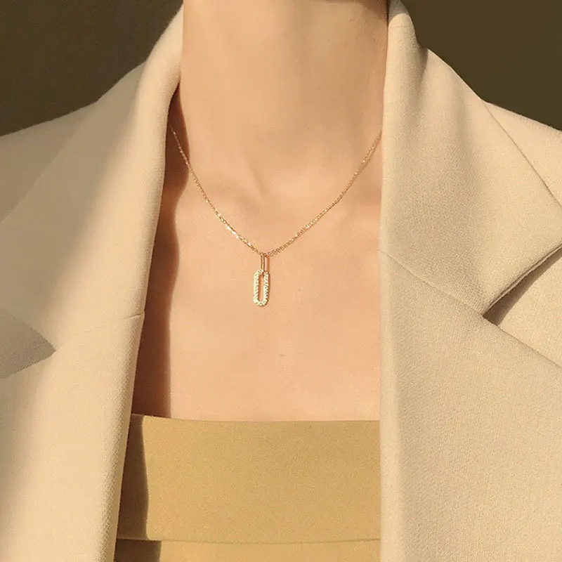 S925 Sterling Silver Geometric Necklace New Simple Hollow Pendant Flashing Diamond Clavicle Chain Woman Jewelry Accessories Gift