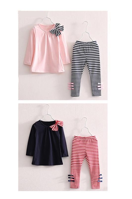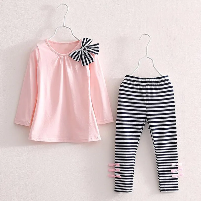 Bear Leader Children's Sportswear Girls' Autumn/Winter Set Bow Tie Decal Top+Striped Pants Set Girls' Children's Clothing 3-7Y