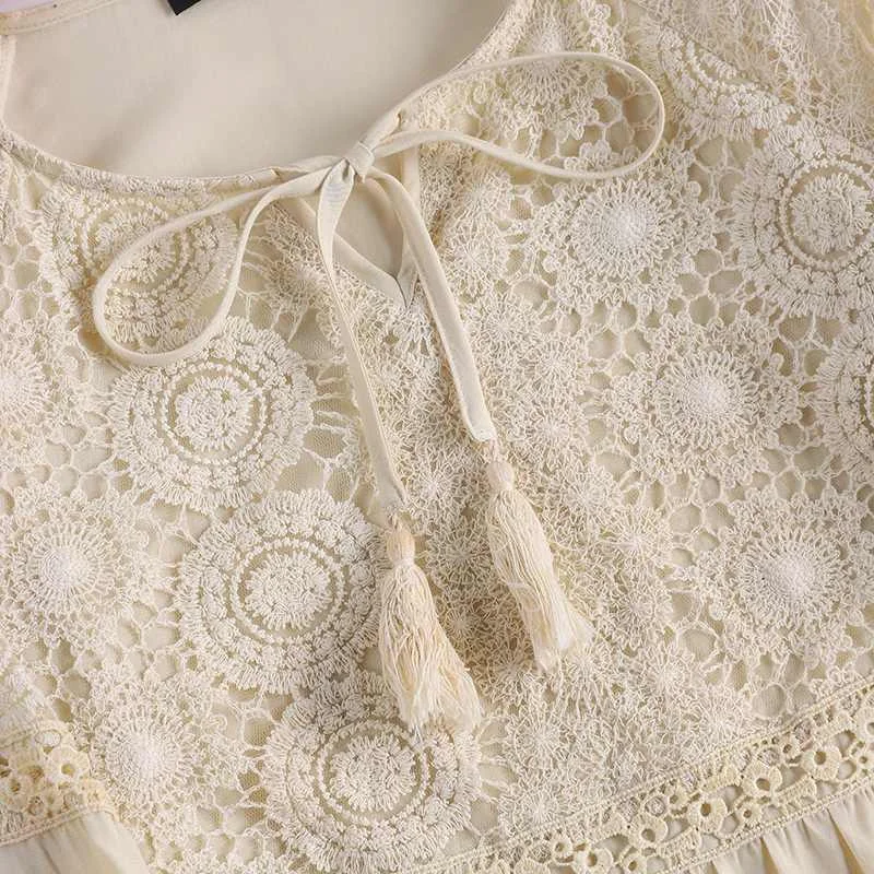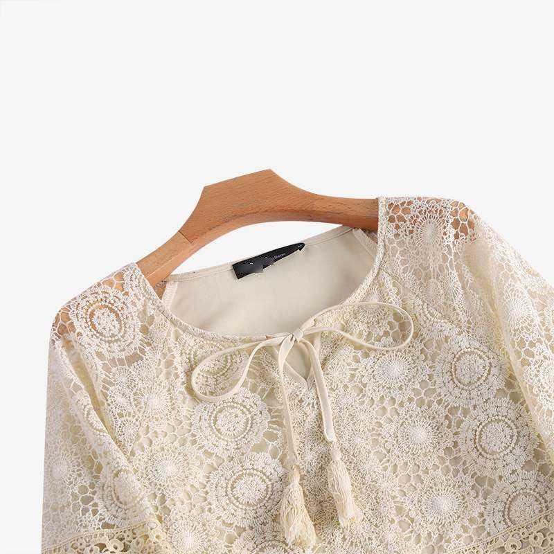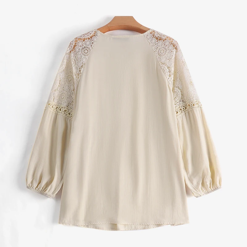 Long Sleeve Lace and Crochet Casual V Neck Blouse