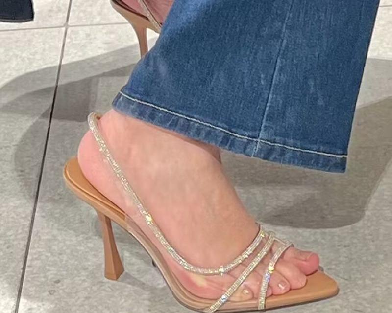 Fashion Women Pumps Sandals Summer Sexy Slingback High Heels Rhinestones Elegant Pointed Toe Transparent PVC Party Wedding Shoes