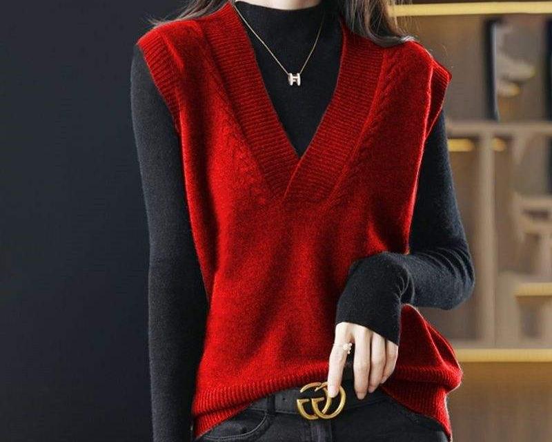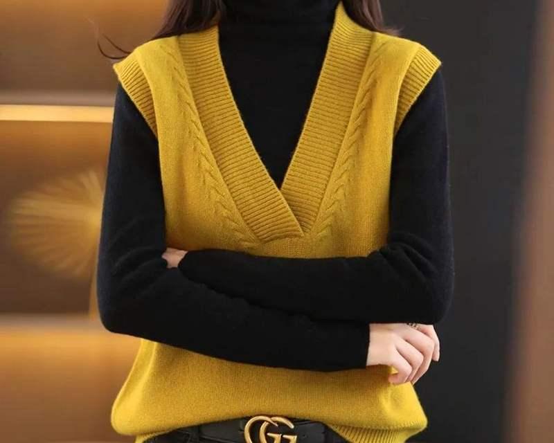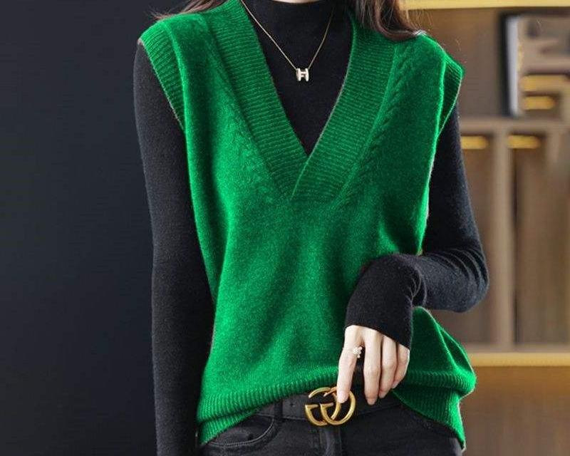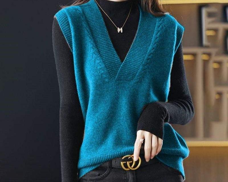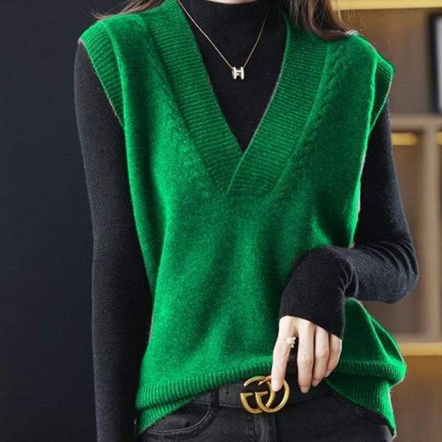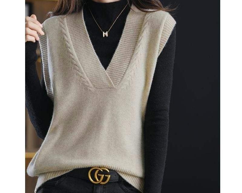 Korean Fashion Women Solid Sweaters Vest Spring Autumn New Loose Sleeveless V-neck Harajuku Vintage Casual Pullover Tops 2023