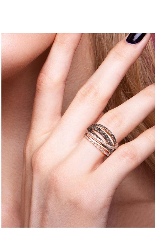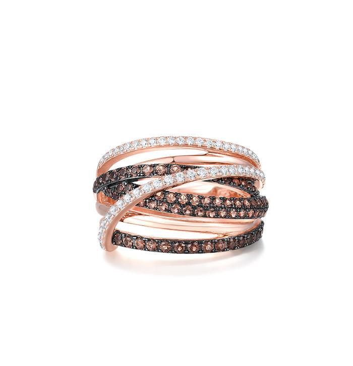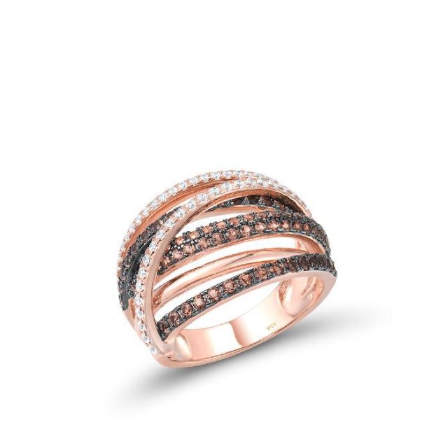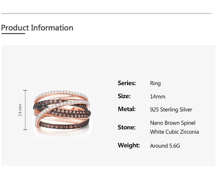 SANTUZZA Silver Rings For Women Pure 925 Sterling Silver Sparkling Nano Brown Spinel White CZ Ring Glamorous Party Fine Jewelry