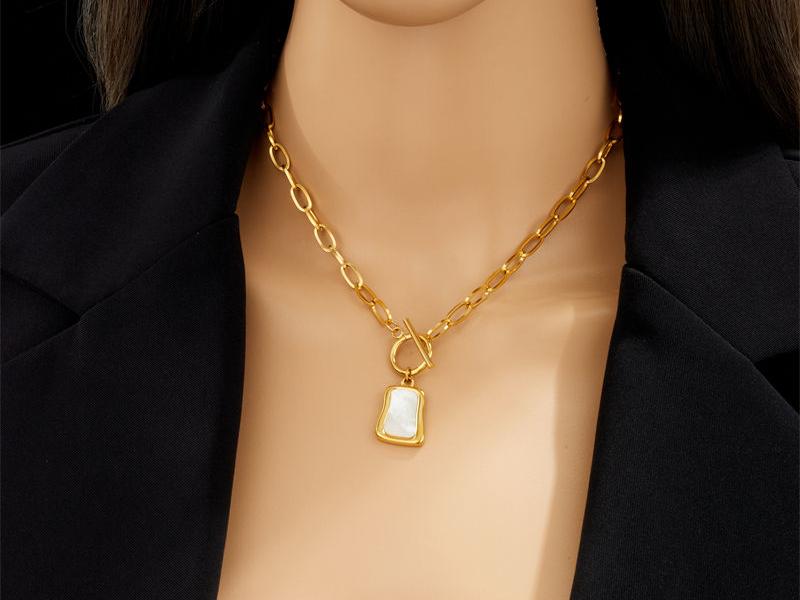 DIEYURO 316L Stainless Steel Geometric Trapezoidal Pearl Oyster Pendant Necklace For Women New OT Buckle Chains Jewelry Gifts