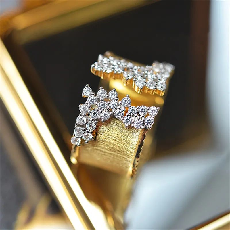Vintage Female White Zircon Stone Ring Classic Gold Color Big Engagement Ring Charm Crystal Round Wedding Rings For Women